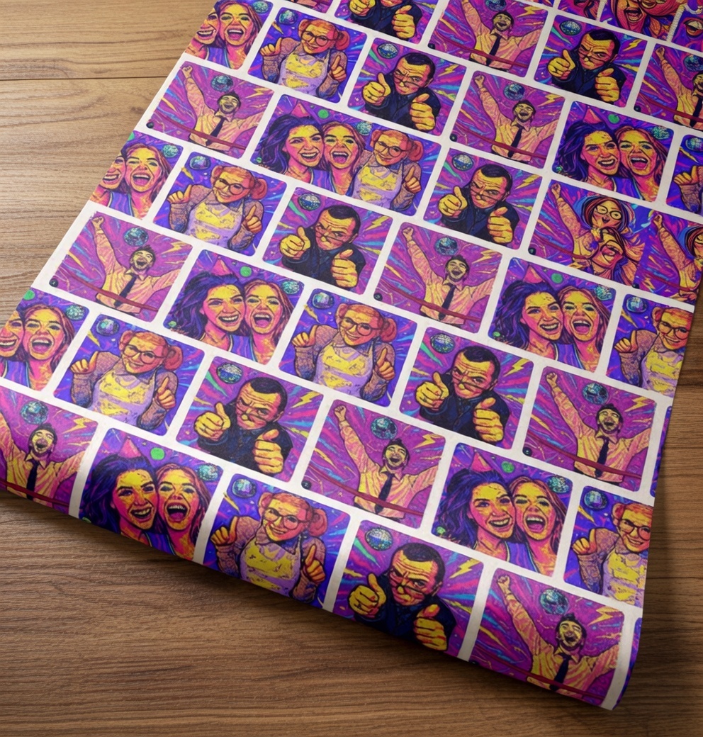 Lade ein Foto hoch, wähle deinen Lieblingsstil – und erhalte einzigartiges Geschenkpapier, das es nur einmal gibt. Fertig in 3 Minuten.